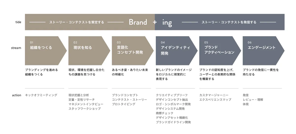 私たちは長年のブランディング支援の経験から得た市場への洞察を活かし、ユーザーに選ばれるブランドを構築するための支援を提供します。市場リサーチ、コンセプトの策定などの上流工程から、ブランディングワークショップ、ウェブサイトやSNSなど、あらゆる接点のブランド体験をかたちにします。
